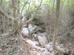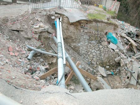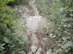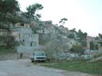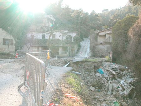 Il y a quelques mois, les fortes pluies ont emmenées des pans entiers de cette route nouvelle construite dans l'urgence n'importe comment. En l'absence de bassins qui auraient dus êtres construits en amont , les remblais non consolidés se sont précipités dans les vallons sous l'action de l'eau retenue par la route. Je dis à cet homme que cela peut recommencer à tous moment et qu'il ne faut pas qu'il continue à habiter cette maison car elle se trouve en plein milieu de la ligne d'eau. Le torrent a emmené la route mais aussi un épais mur de clôture qui protégeait la maison. La prochaine fois la maison entière sera peut-être complètement dévastée. D'ailleurs le type me dit aussi que son fils a failli être pris par le torrent. Malgré tout cela il ne veut rien comprendre. Il l'a acheté comme ça cette maison, ce n'est pas sa faute si elle est mal placée. Cet homme me raconte qu'il n'y a eu en effet aucun permis de construire accordé pour cette bâtisse étant donné que c'est l'armée allemande qui l'a édifiée. Les occupants y torturaient des gens parce que le massif du Mont Saint Cyr dont ils contrôlaient strictement l'accès leur servait de base arrière.