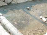 Plus haut, lorsque je constate moi même l'état de la route feu je suis encore plus inquiet. Mais il paraît que les autorités sont prévenues. Quelques bassins ont été construits, quelques buses posées avec un tout petit peu de ciment et quelques gabions positionnés pour freiner le prochain déluge. De ce point dominant, on a l'impression que l'entière agglomération de Marseille est en danger. J'imagine que c'est l'un des rôles du canal qui ceinture la ville que de retenir les eaux des massifs environnants. Le canal de Marseille est d'ailleurs une limite continue qui permet de distinguer l'agglomération Marseillaise du grand Marseille et de comparer leurs échelles respectives. Je l'ai franchi tout à l'heure beaucoup plus étroit qu'aux Aygalades vendredi. Après lecture de ma carte IGN, je crois comprendre que pour garder sa continuité, le canal franchit l'Huveaune en amont de la Barasse. Je pense au documentaire sur l'affaire Dominici que j'ai visionné récemment avec C. . Le vieux Dominici insiste pour dire que la terre de Provence laissée à l'abandon redeviendrait sauvage en très peu de temps, qu'il faut toujours y redresser des cailloux, sans cesse y travailler.