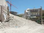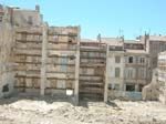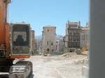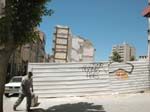 Je traverse donc la Cannebière et je remonte la rue Longue des Capucins pour butter sur la table rase Euromed de l'ïlôt Bernard du Bois. Ce sont les mêmes opérations ringardes que celles menées à Paris il y a 30 ans au nom de la salubrité publique mais réalisées surtout pour faire tourner les toupies à béton et déplacer les pauvres en périphéries. Le type d'opérations immobilières qui ont été stoppées par le mouvement associatif à Belleville par exemple. La rénovation des immeubles anciens n'est sûrement pas aussi juteuse pour l'entreprise btp-france. On conserve deux ou trois façades pour faire comme si. Les grands artistes-urbanistes grenouillards du petit monde influent (parisien de paris intra-muros) de "la ville" franco-française totalement occupés à cirer les pompes des grands groupes bétonniers ferment leur gueule pour avoir leurs parts du gâteau de la commande publique starifiante. Je n'ai pas l'impression que les marseillais cherchent à s'organiser pour lutter contre ces mécanismes débilitants ?! Je me retrouve là énervé à tourner en rond sur ce grand terrain vide. J'enregistre des images puis me retrouve porte d'Aix. Je n'ai pas bien compris où était situé le marché du Soleil mais des gens m'indiquent le chemin. Ici les pelleteuses ne sont pas encore arrivées mais il y a beaucoup d'immeubles murés à l'Est de l'avenue Camille Pelletan, la majeure partie des façades sur l'avenue entre la porte d'Aix et la rue des 13 Escaliers.