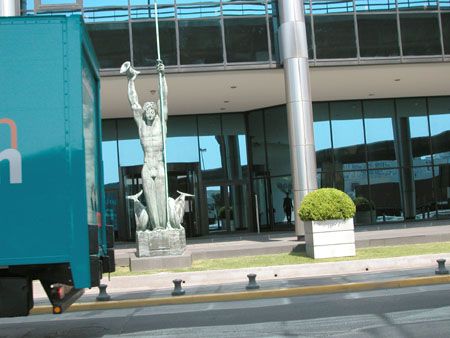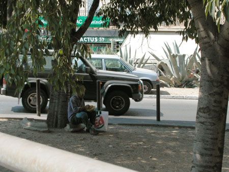 Les souvenirs tous frais du marché du Soleil et de l'îlot Bernard Dubois dans la tête (cf. S27) je reviens Porte d'Aix dans l'intention de voir comment cela se relie avec la Joliette juste en dessous de l'avenue Camille Pelletan. Hier j'ai visité brièvement la maison de l'Euroméditerrannée boulevard des Dames. La plaquette de l'Établissement Public d'Aménagement parle d'un trait d'union entre services et habitants mais l'hôtesse me voyant flâner dans le hall me regarde de travers. Je n'ose pas aller voir dans les étages. Il n'y a même pas d'ailleurs de panneau pour expliquer se qu'il s'y passe. Une grosse maquette fade traîne dans un coin. Les masses monolithiques poussiéreuses d'immeubles bouyguesques ont remplacées le tissu ancien pour visiblement créer le renouvellement urbain de cette liaison stratégique entre la Joliette et la gare Saint-Charles. Le débouché de l'autoroute A7 sur la Porte d'Aix est repoussé avenue du Général Leclerc. Tous les terrains ainsi libérés sont nettoyés puis bétonnés au maximum. L'autoroute est remplacée par un grand escalier monumental qui descend vers l'arc de triomphe. Les programmes immobiliers sont bien sûr essentiellement du portage institutionnel comme on dit dans le milieu. Sur le mur, en guise d'exposition, deux ou trois papiers mal accrochés d'une association du quartier Saint-Lazare fournissent un alibi participatif peu crédible à cette maison de l'Euroméditerrannée qui a cependant le mérite d'exister.