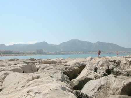 intime. Finalement sur les enrochements qui séparent la plage Bonneveine
