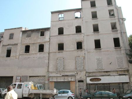Ce jeudi je ne suis pas parti pour une promenade mais pour une visite informative de la zone de l'Euroméditerrannée. Je ne comptais pas prendre d'image. Je commence cependant Porte d'Aix à cause de ces vieilles façades qui me touchent. Leurs ouvertures béantes me font penser aux regards en creux de certaines statues. Pour l'instant elles sont toujours vivantes. Je remonte un tout petit peu l'avenue Camille Pelletan qui prolonge de ce côté l'axe majeur nord-sud de la ville. Les urbanistes ont donc décidé de faire tomber la partie droite de ce profil urbain constitué. Et cela me met hors de moi. C'est comme Balzac à La Courneuve, l'État veut bien donner des subventions à condition de casser les logements existants pour en construire de nouveaux, plus casernants encore, moins grands, moins confortables, moins lumineux et qui dans vingt ans poseront encore plus de problèmes. Le politique et les opérateurs organisent la médiocrité architecturale ? À se demander si la seule idée n'est pas uniquement de subventionner le btp-france, économie globale d'une société post-coloniale ségrégationniste et militarisée ? De toute façon les architectes sont les premiers responsables de l'industrialisation du bâtiment qu'ils ont réclamée à une époque. Juste retour des choses, l'industrie a finalement réussi à se débarrasser de toute velléité de création. Les architectes peuvent à la limite faire du design mais sûrement pas s'intéresser a la construction de situations.