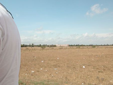 Sur ce rond-point au bout de la plaine de la Crau, là où s'embranche la R.N. 268 qui dessert le port de Fos, on a la sensation soudaine de rentrer dans la ville. Nous nous arrêtons pour que je prenne des images. J'ai la curieuse impression de réaliser ma première promenade dans le grand Marseille (comme disent certains) et en effet sur le côté un panneau signale qu'il s'agit d'un domaine du Port Autonome. J'ai pourtant déjà réalisé des promenades à l'extérieur. L'extérieur étant pour moi, à Marseille, l'espace au delà des chaînes de collines qui entourent la ville. Peut-être ces collines sont comme le boulevard périphérique pour Paris ? Pour les systèmes de représentation de la ville en tout cas ? Ce n'est peut-être pas comparable. C'est la première fois que je ressens l'existence de cette entité problématique que semble constituer le grand Marseille.