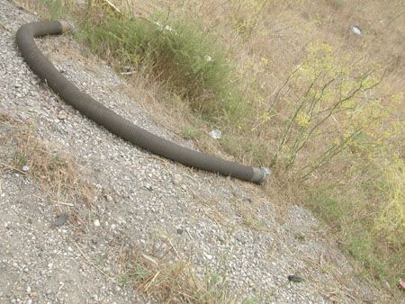 Les semi-remorques se suivent à une cadence soutenue. J'imagine la rotation du compteur journalier des milliers de tonnes qui transitent par ce point de la conurbation. Il y a très certainement des capteurs installés sous le bitumes et reliés directement au siège de l'INSEE à Malakoff. Les camions sont pour beaucoup des portes containers ou bien des camions citernes. On imagine très bien lors de ces rotations continuelles que l'un d'eux se déverse dans le fossé ou sur la route en répandant des substances beaucoup plus dangereuses que d'habitude. Les abords du rond-point regorgent d'ailleurs d'objets perdus tombés du camion sous l'effet de la force centrifuge.